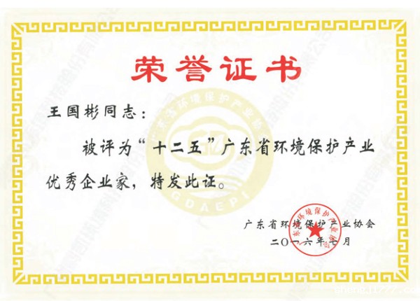 “十二五”广东省环境保护产业优秀企业家