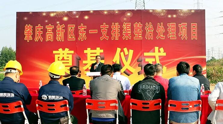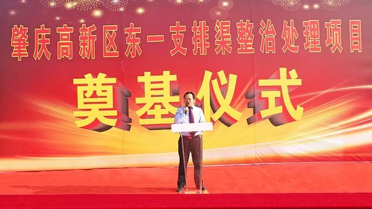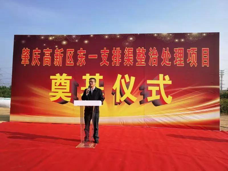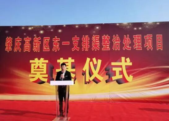 肇庆市高新区环保局刘小辉局长出席奠基仪式并致辞。强调,项目一是履行我区的环保责任与省市的考核要求;二是按中央环保督查及回头看的文件要求立行立改进行整改;三是践行社会责任和义务,保障高新区水环境安全;四是作为园区系统治水的重要组成部分,要为系统整治工程作出带头示范作用。项目要严格按照合同约定的时间,做到高标准、严要求确保在今年12月15日前完成建设并投入使用。