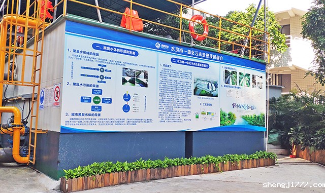 【工程概况】水均岗涌是沙河涌的支流,长330米,上游为污水渠箱,没有清水水源,每当下雨泄洪时,为保障排涝安全,污水渠箱内的雨污合流水排入河道泄洪,河涌水质受到污染。为消除水体污染,改善河涌水生态环境,开展了水均岗一体化污水处理项目。
