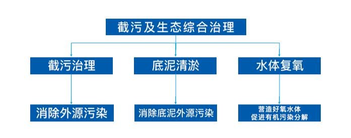 本项目采用以“清淤、截污”为主,辅以“水体复氧”相结合的技术实施生态修复,消除雨季水渠下泄水对下游双洋渠的不良影响,重新构建水渠的良好生态环境。