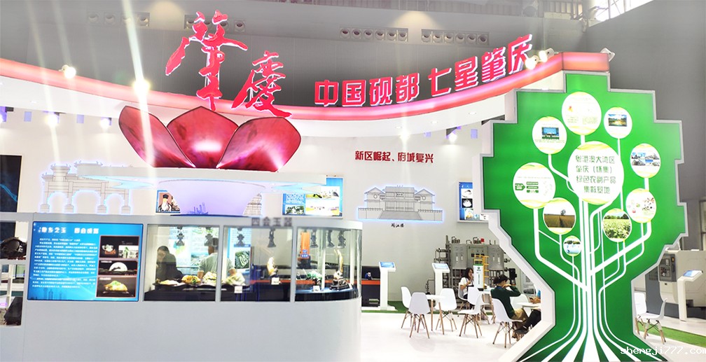 广东省肇庆市展馆以现代化的色彩格调,融合宋城墙的历史造型,通过现代和传统相结合的方式展示肇庆“新区崛起、府城复兴”的发展蓝图。重点展示了肇庆市作为粤港澳大湾区连接大西南枢纽门户的发展定位及城市形象,组织了肇庆新能源汽车、先进制造装备、节能环保三大主导产业有关企业参展。