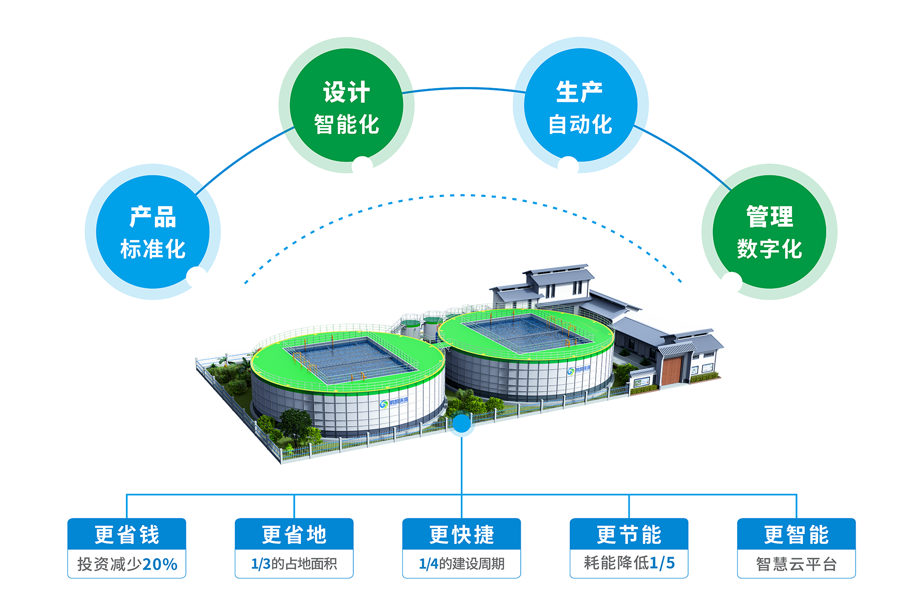 采用钢结构建设模式及先进的工艺,建材使用量较传统污水厂减少86%,碳排放量减少75%。