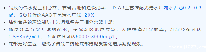 鹏凯圆—悠米直播nbaDIAB高效气升环流式脱氮生物反应器(Efficient Denitrogenation Process Integrated Airlift Loop Bioreactor 简称DIAB工艺 )主体设备呈多级环状,通过控制内部回流和曝气量实现好氧反硝化;内圈集成好氧段与沉淀池,通过三相分离器实现水、气、污泥有效分离,并将分离后的气体收集,形成大流量的气提,实现泥水混合液在系统内的无动力回流。可通过生化反应高效去除水体中COD、NH3-N、TP、TN、SS等污染物,使出水达标排放。主要附属设施包括“污泥浓缩+压泥系统”、“加药系统” 、“电控系统” 和“供风系统” 等,操作运行简单可靠。