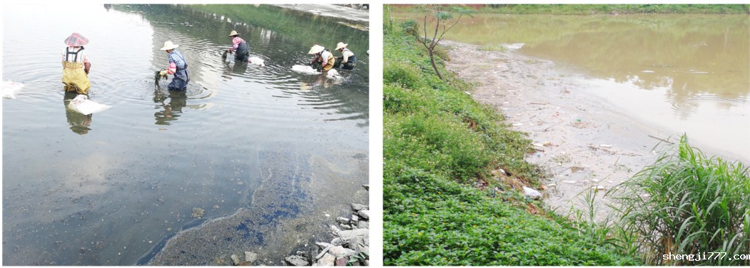 项目描述:水面面积63000m2,水深约2m,修复前由于污水厂尾水排入及鱼类养殖导致水质劣V类,底泥黑臭,富营养化程度严重,水体浑浊发绿,透明度<0.4m。通过污水截污、尾水深度净化及清水型水生态系统构建生态修复后,水体自净能力显著提升,水质达到地表III类水标准(GB3838-2002)标准,水体清澈见底,水草萋萋,提升公园环境质量。