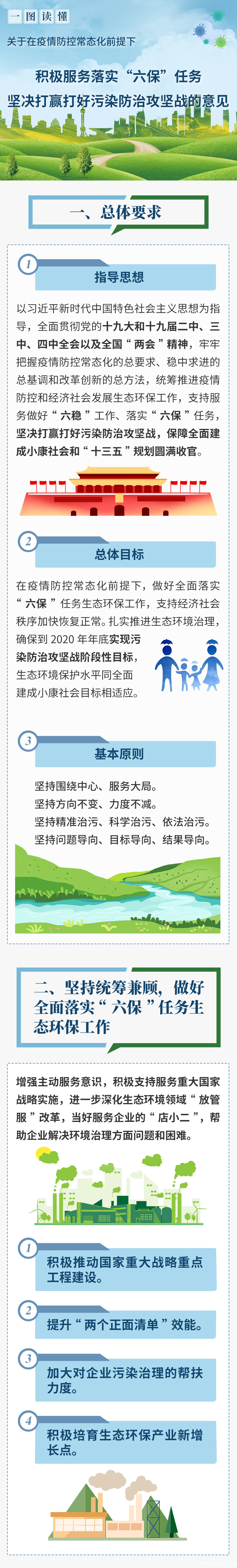 生态环境部近日印发实施《关于在疫情防控常态化前提下积极服务落实“六保”任务坚决打赢打好污染防治攻坚战的意见》,顺应疫情防控常态化新形势,积极服务落实“六保”任务,精准扎实推进生态环境治理,确保如期完成全面建成小康社会、“十三五”规划以及污染防治攻坚战阶段性目标任务。