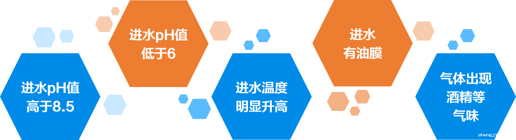 出水铵氮值过低;浑浊度升高;进水量过高;回流污泥泵运行故障;pH值过低或过高;污泥被机械粉碎;亚硝酸盐含量升高。