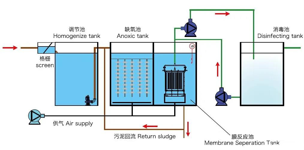 MBR工艺,是活性污泥法和膜分离技术组合的新型工艺,最大特点就是,处理效率上升一个层次,处理后的水质标准高。