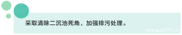 主要是在二沉池长期滞留而厌氧发酵产生H2S、CH4等致使大块污泥上浮,变黑并有恶臭。