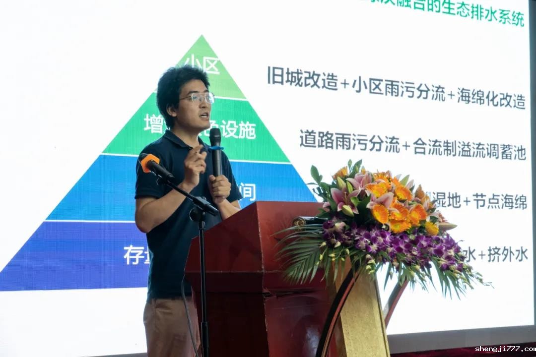 中规院(北京)规划设计公司水环境治理所所长王晨就《以蓝绿灰融合的方式构建城市排水系统的韧性网络》作主旨演讲,详细介绍了构建蓝绿灰融合——合流制溢流污染控制系统的总体思路。
