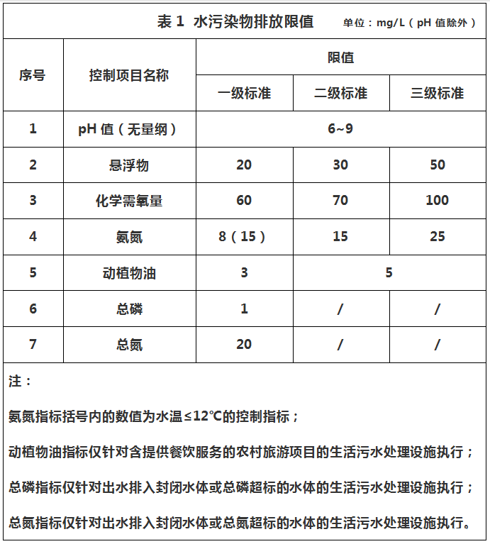 二级标准:处理规模20m³/d及以上的设施出水排入环境功能未明确的水体;
