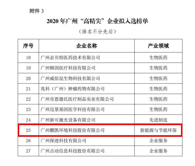 2020年12月10日,广州市科技创新企业协会发布《关于2020年发现广州“独角兽”创新企业榜单遴选结果公示》,广州悠米直播体育在线观看成功入选2020年广州“高精尖”企业榜单,成为新能源与节能环保领域中唯一入选的创新企业。
