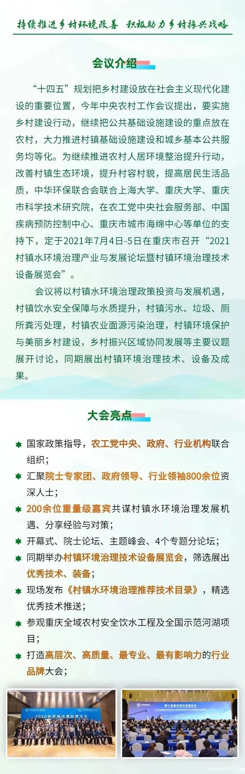 由中华环保联合会、上海大学、重庆大学、重庆市科学技术研究院、中国工程科技发展战略重庆研究院联合主办,广州悠米直播体育在线观看协办的“2021村镇水环境治理产业与发展论坛暨村镇环境治理技术设备展览会”,将于2021年7月4日-5日在重庆市隆重召开。
