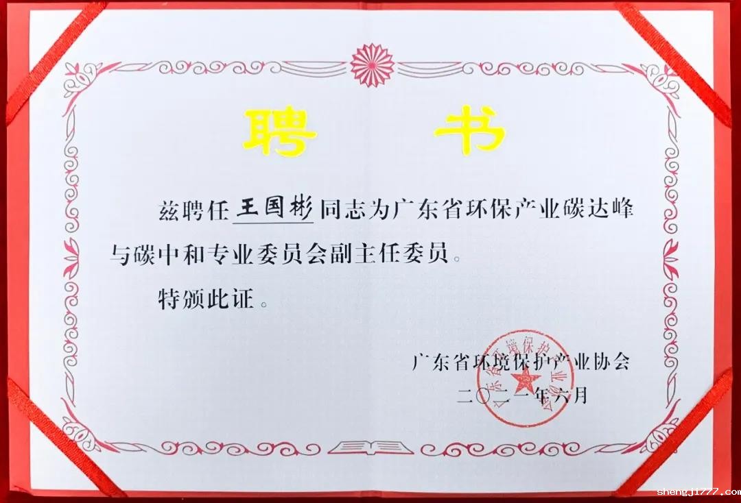 优米app赚钱王国彬董事长聘任为为广东省环保产业碳达峰与碳中和专业委员会副主任委员