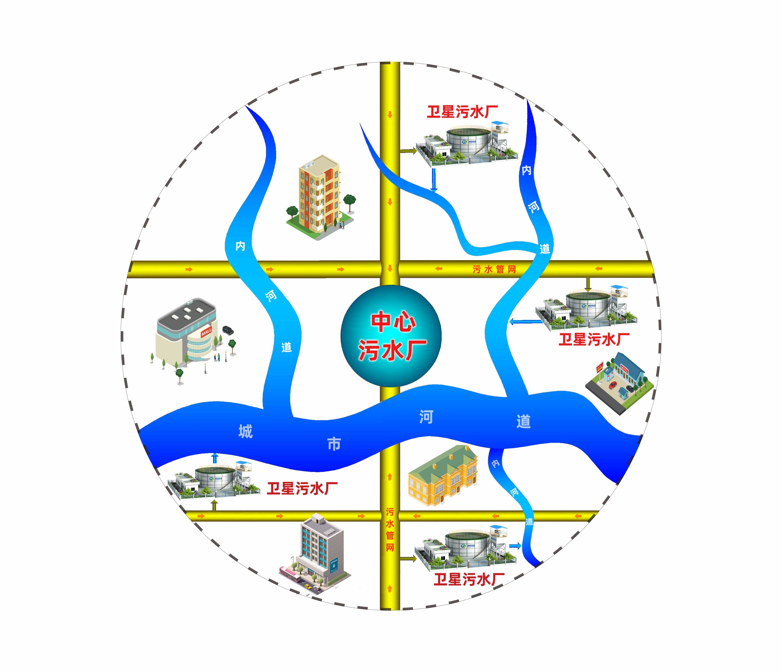面对建成区的污水处理的困局,王国彬及团队提出卫星污水厂的概念。不同于分布式污水厂,分布式污水厂可能只是某一个区域自由去搭配资源,而卫星污水厂是结合污水管网进行分配,在污水干管沿途建设卫星污水厂,抽取干管污水进行处理后,再生水就近回补城市内的河涌,可科学有效地处理增量的生活污水,助力城市可持续发展。