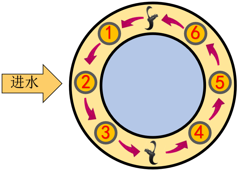 鹏凯圆类似一个环形圆。外圈类似一个氧化沟,里面设置了几组精准曝气段,根据曝气段的不同,可以单独控制不同的曝气位置。王国彬指出,鹏凯圆是一个柔性控制的过程,当来水水质发生变化的时候,可增大硝化区域,适当增大曝气区域,通过精准曝气来柔性控制应对来水水质的变化。