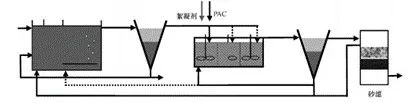 方式一工艺最简单,投资费用最低,后续滤池的设置可以保证出水水质,降低 PAC 流失,但这种工艺的 PAC投加量最高;