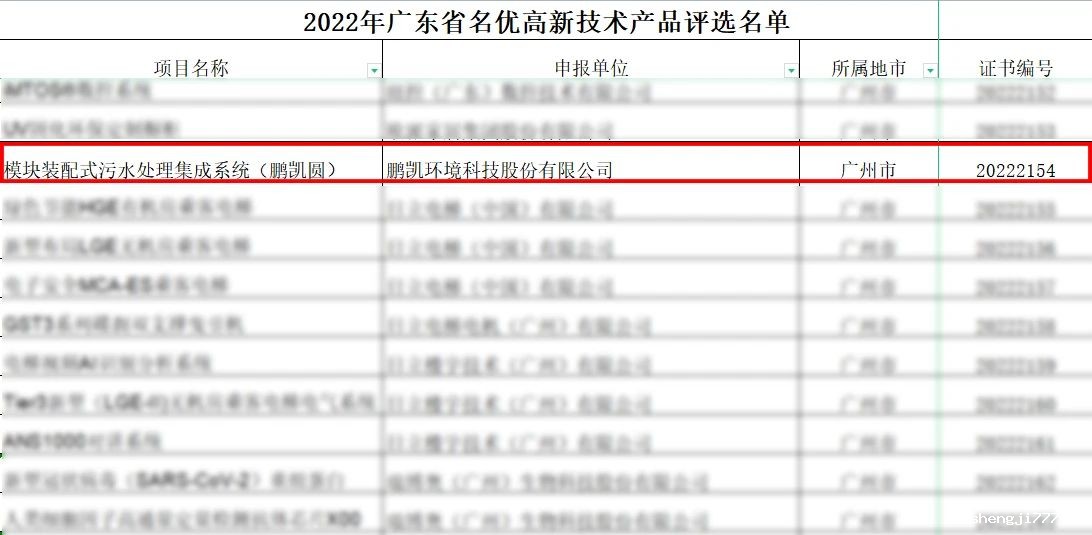 近日,广东省高新技术企业协会公布了《2022年广东省名优高新技术产品》名单,优米app赚钱“模块装配式污水处理集成系统(鹏凯圆)”(以下简称“鹏凯圆”)凭借创新能力突出、技术先进领先、质量可靠、市场前景好等综合优势,入选“2022年广东省名优高新技术产品”名单。