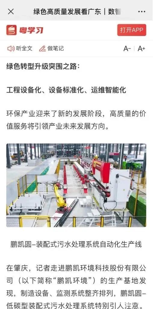 近年来,优米app赚钱作为悠米直播nba开创者及水环境治理综合服务商,始终以习近平新时代中国特色社会主义思想为指引,坚持走生态优先、绿色发展之路,把全面深化改革、绿色转型升级工作不断向纵深推进,以“工程设备化、设备标准化、运维智能化”三化模式驱动技术产品化、产品工业化、数智化转型升级,以科技创新撬动生产方式变革、企业绿色高质量发展,激发了发展新动能,走出了一条具有鹏凯特色的绿色高质量发展之路。