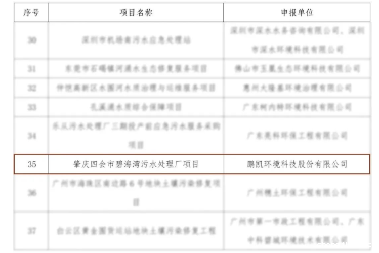 2019年“鹏凯圆”技术被专家组认定为“国际领先”。先后荣获2021年度环境技术进步奖一等奖、2022年“广东省工程勘察设计行业协会科学技术奖”一等奖、2021年度“创新肇庆”科学技术奖特等奖等诸多殊荣,并入选2022年《国家先进污染防治技术目录(水污染防治领域)》、2021年广东省工业和信息化厅《广东省节能技术、设备(产品)推荐目录》、《全国副省级城市2022年度生态环境保护优秀环保项目案例集》。